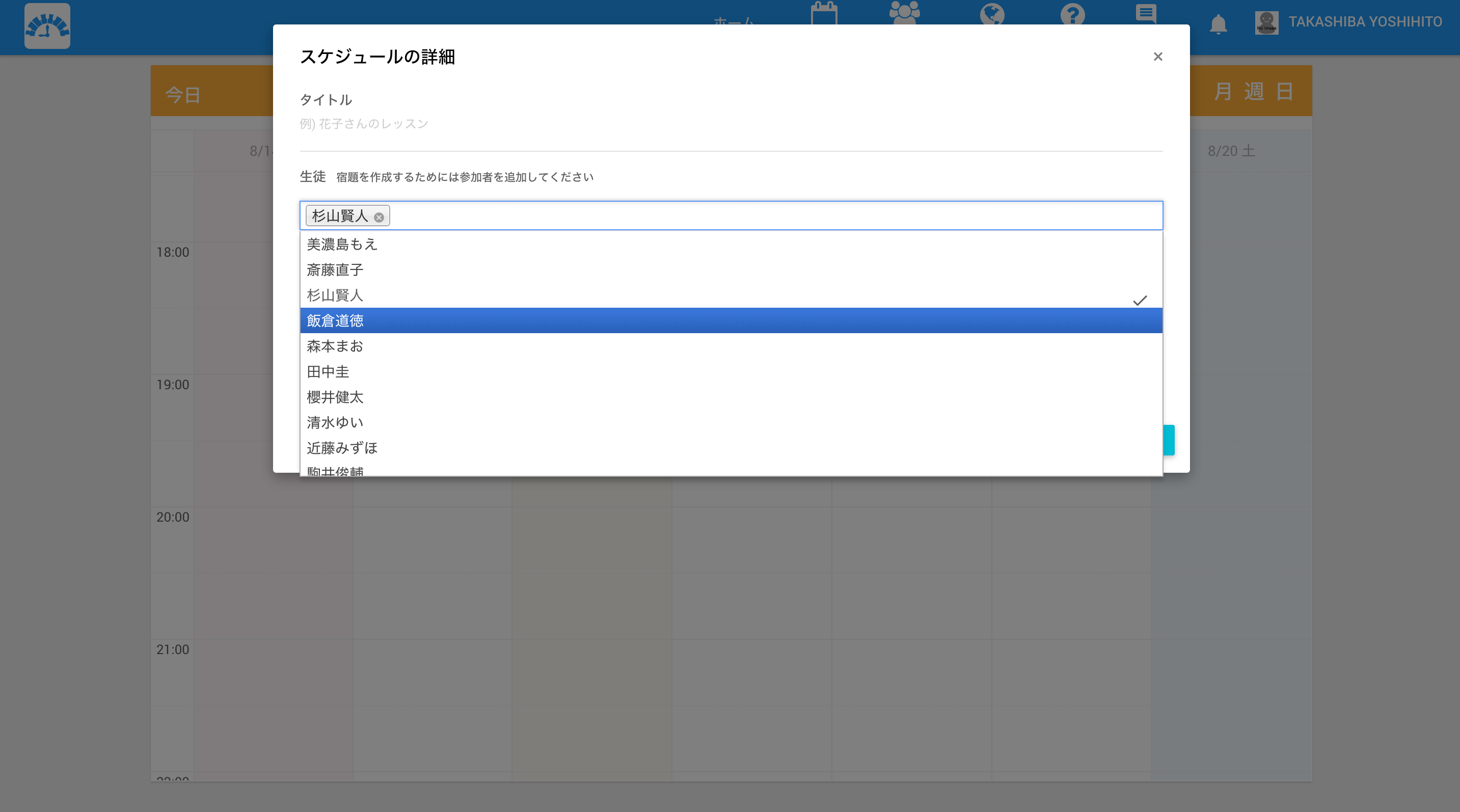 カレンダーのイベントを作成するときに複数の生徒を追加します。