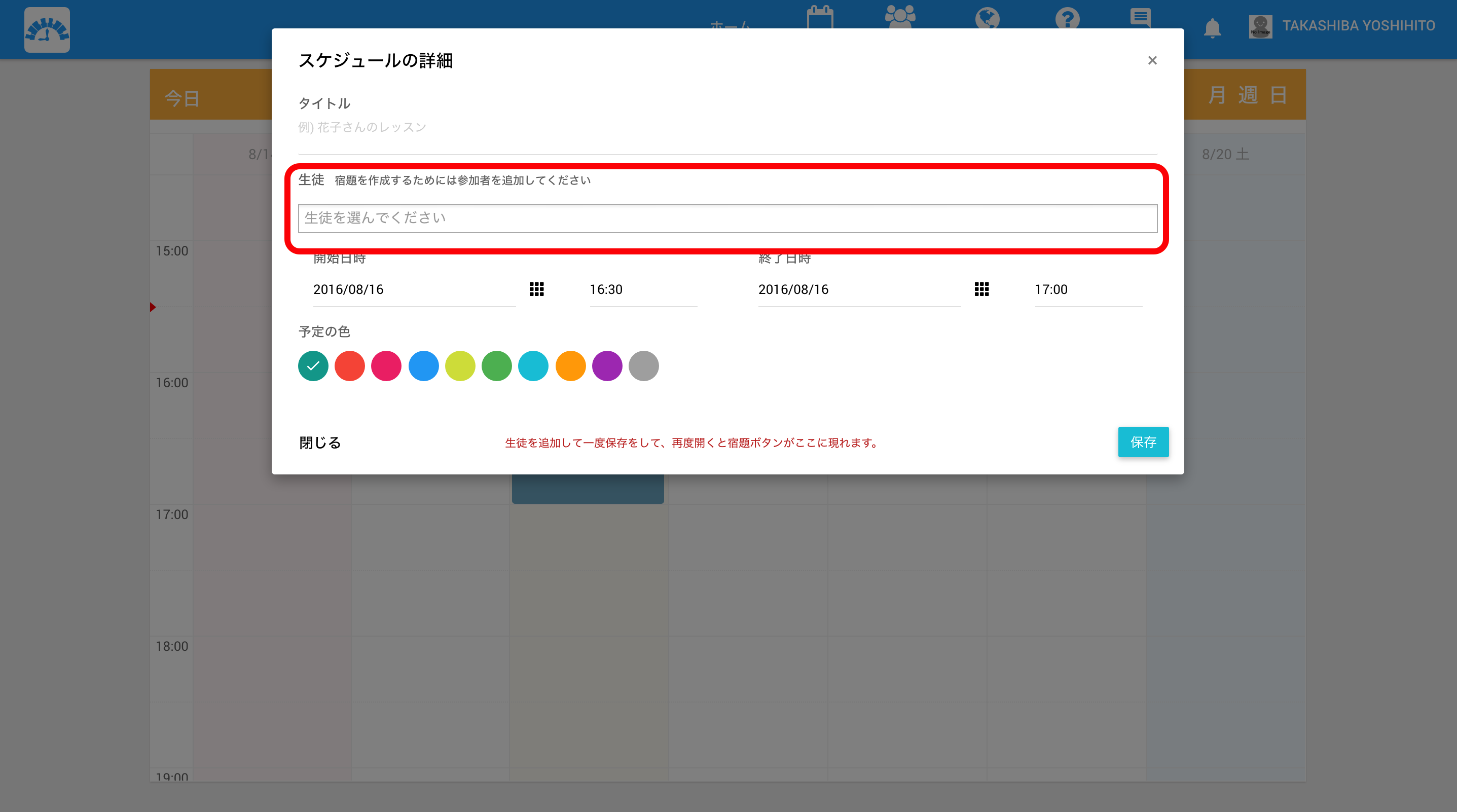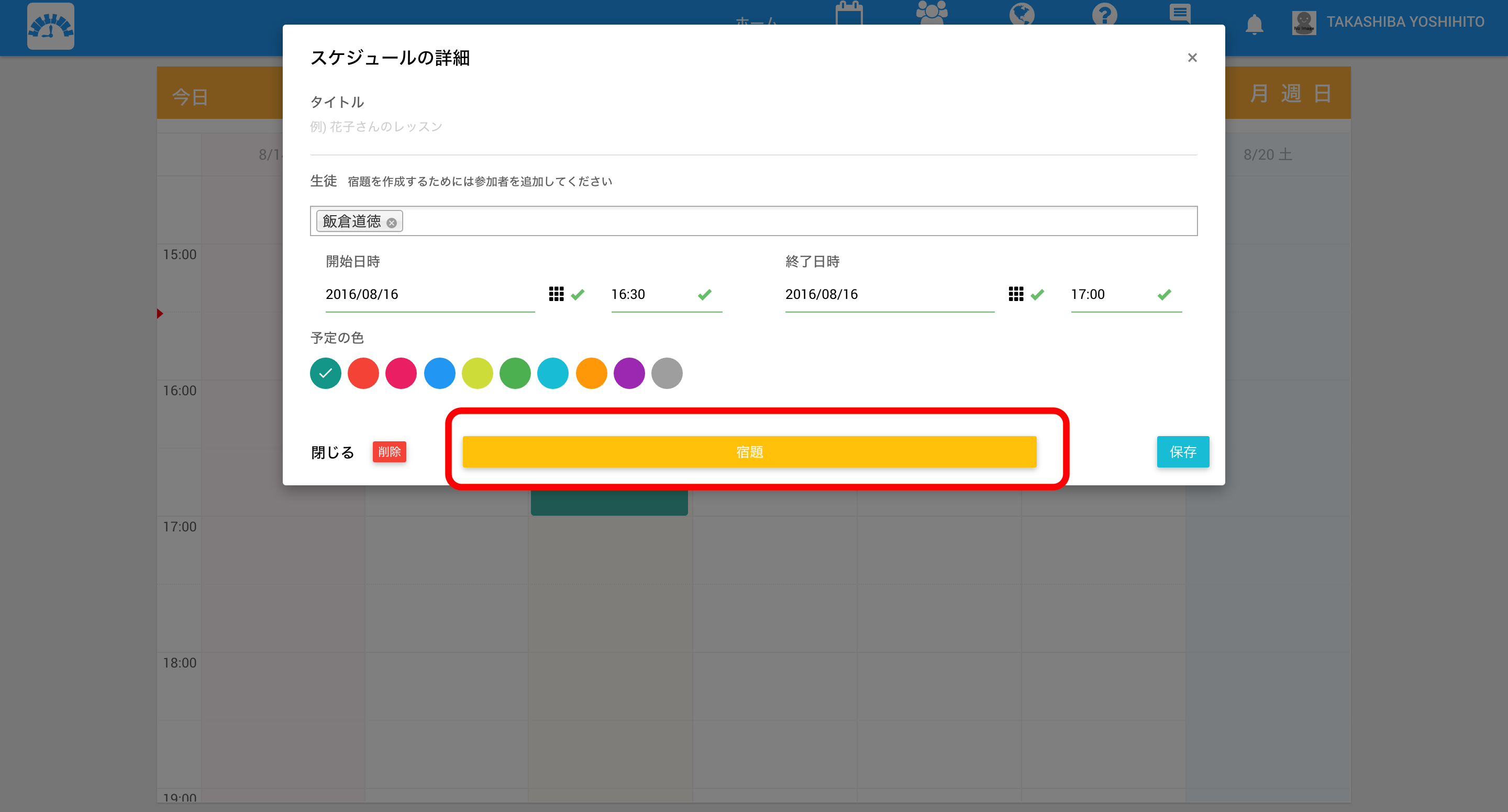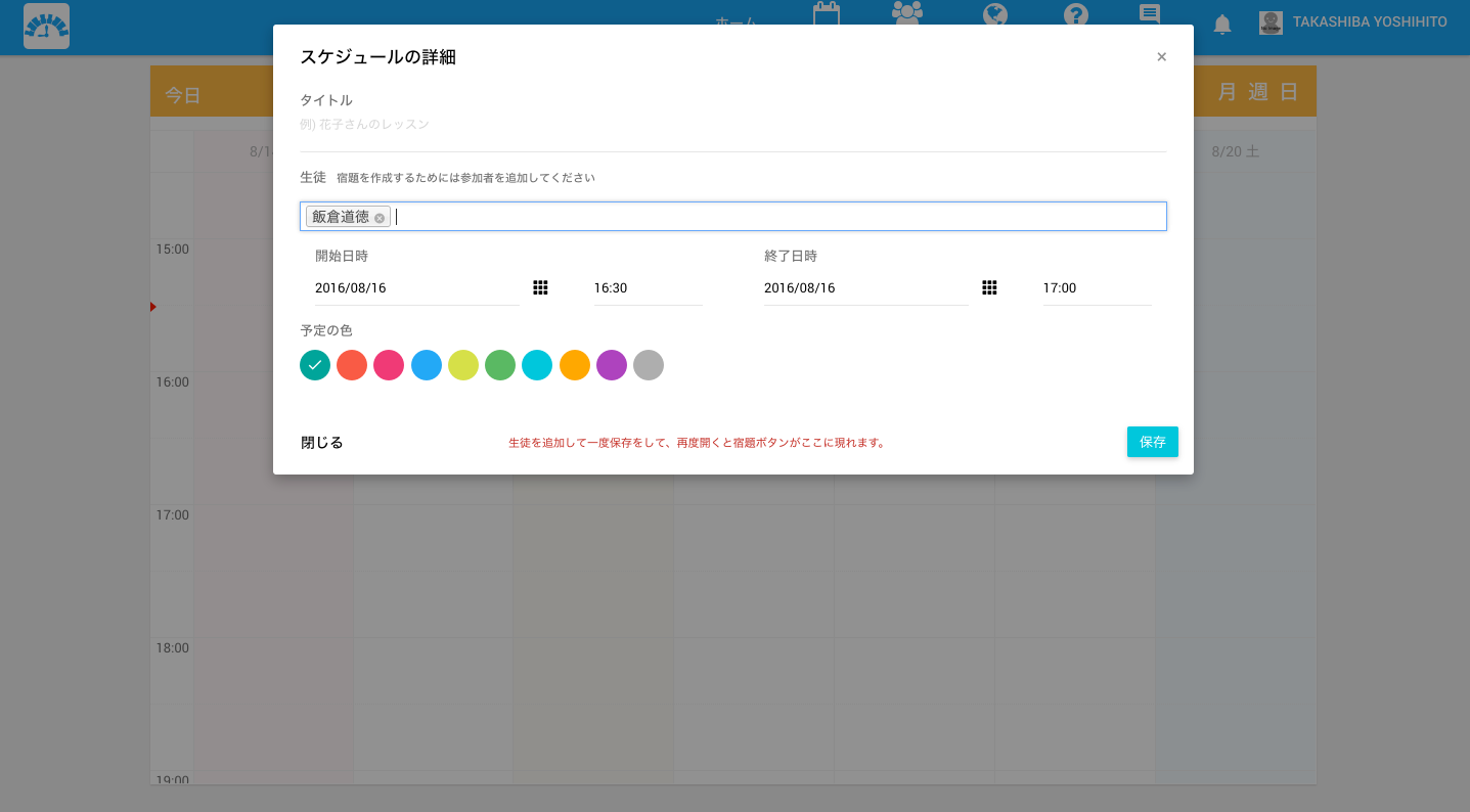 宿題はレッスンに紐付いているため、まずはじめにカレンダーでレッスンのイベントを作成します。